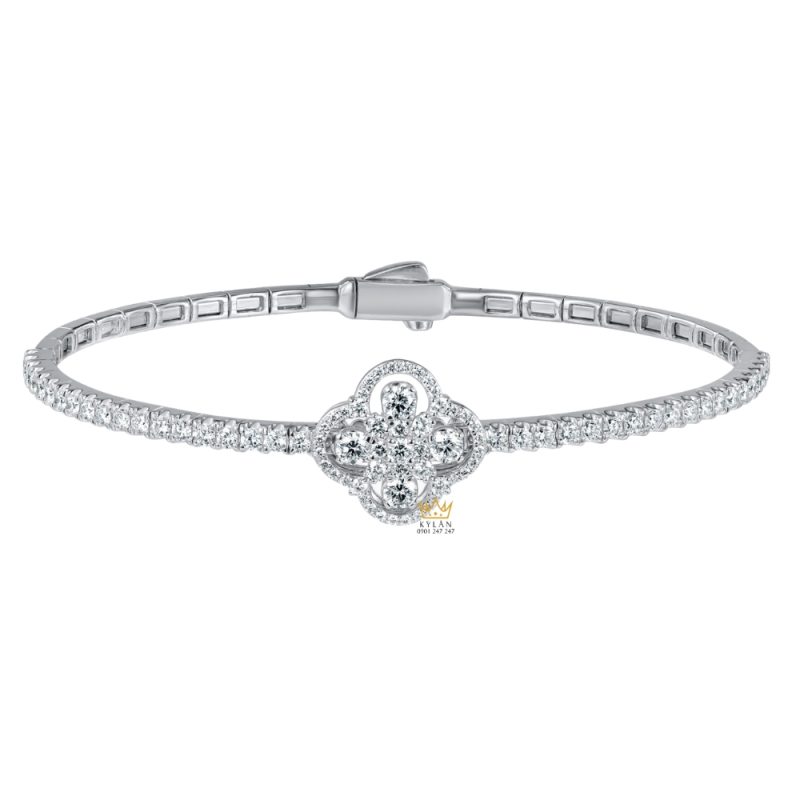 Vòng Tay Vàng Trắng Au750 Dạng Cứng Đính Kim Cương