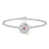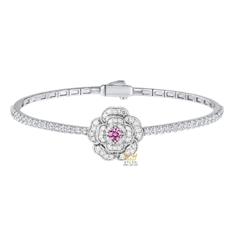 Vòng Tay Vàng Trắng Au750 Đính Sapphire Tím Họa Tiết Hoa